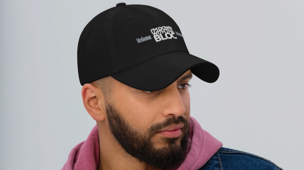 High quality black dad hat featuring embroidered I'm Down With The Bloc design! Represent and support independent music.